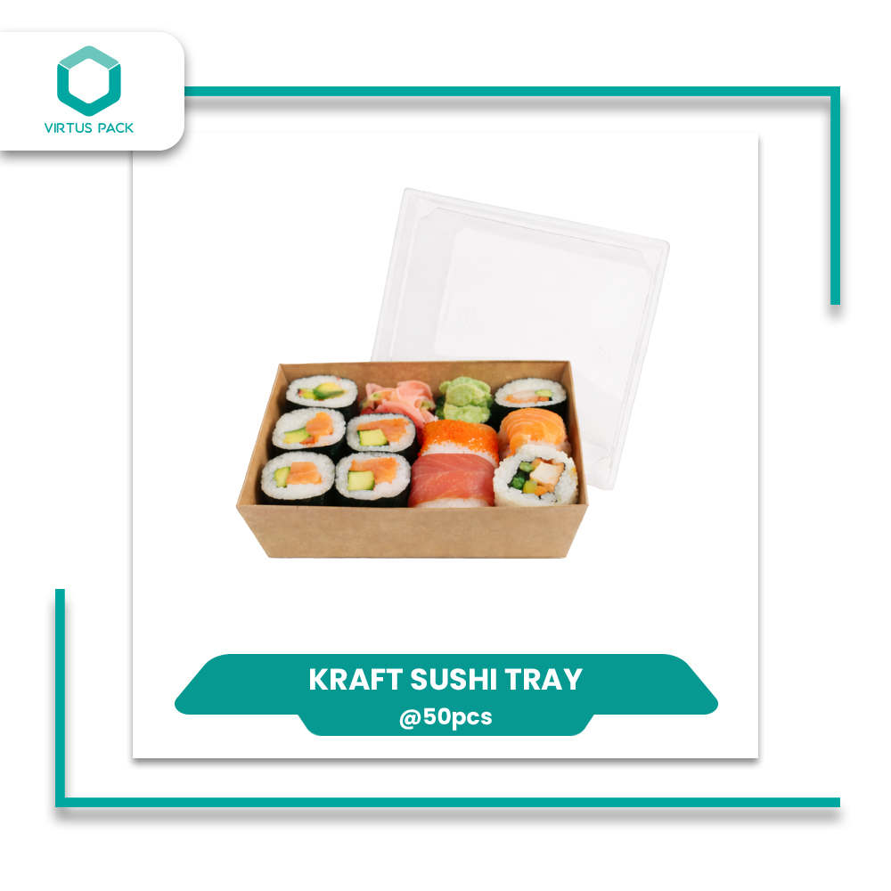 Kemasan makanan praktis dan aesthetics dengan bahan kraft yang sudah food grade, aman untuk makanan dan ramah lingkungan. Dilengkapi tutup transparan untuk menampilkan isi lebih menarik serta menjaga makanan tetap higienis. Cocok untuk sushi, dessert, snack, dan berbagai menu takeaway maupun delivery.